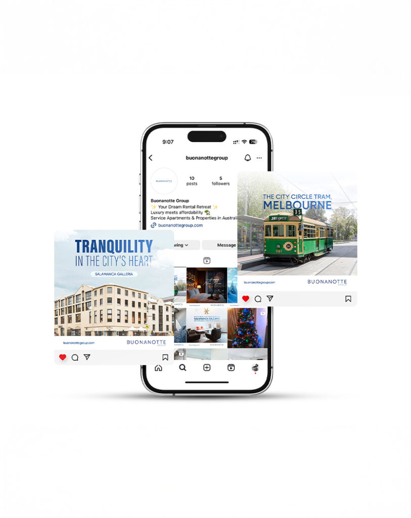 Where “Good Night” becomes an unforgettable experience – Buonanotte Group stands as Tasmania and Victoria’s premium hospitality venture, offering heritage accommodations and modern apartments that blend comfort with quality. For this Australian hospitality gem, we orchestrated a complete digital transformation – refreshing their brand identity, crafting engaging social media narratives, and developing content strategies that echo their commitment to exceptional guest experiences.